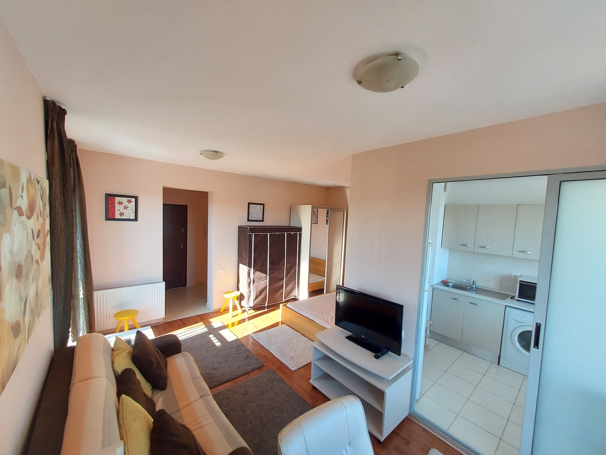 Garsoniera moderna, complex rezidential inchis pazit Quadra Place 1 constructie 2007 complet mobilata si utilata, libera incepand cu 18.11.2021, etaj 10 din 11, vedere superba spre parcul Politehnicii si centrul orasului.