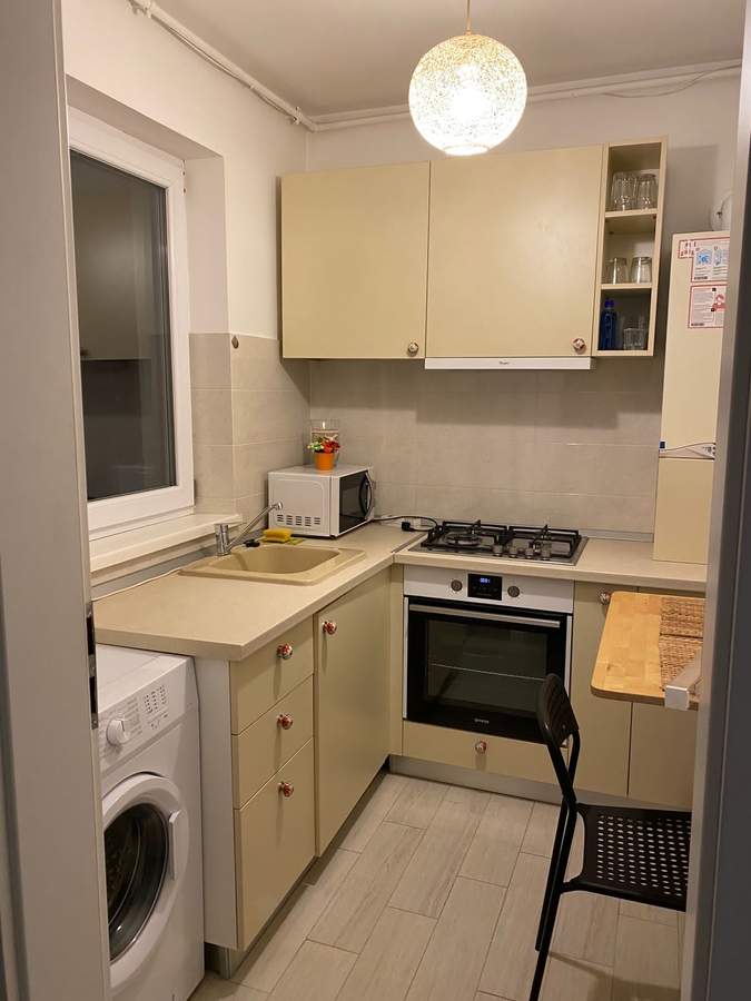 Carrefour, parcul Bazilescu la 800m si Piata 16 Februarie la 2km distanta. Garsoniera este mobilata, utilata, electrocasnice noi, AC, contorizata, dispune de centrala proprie. Loc de parcare auto privat.