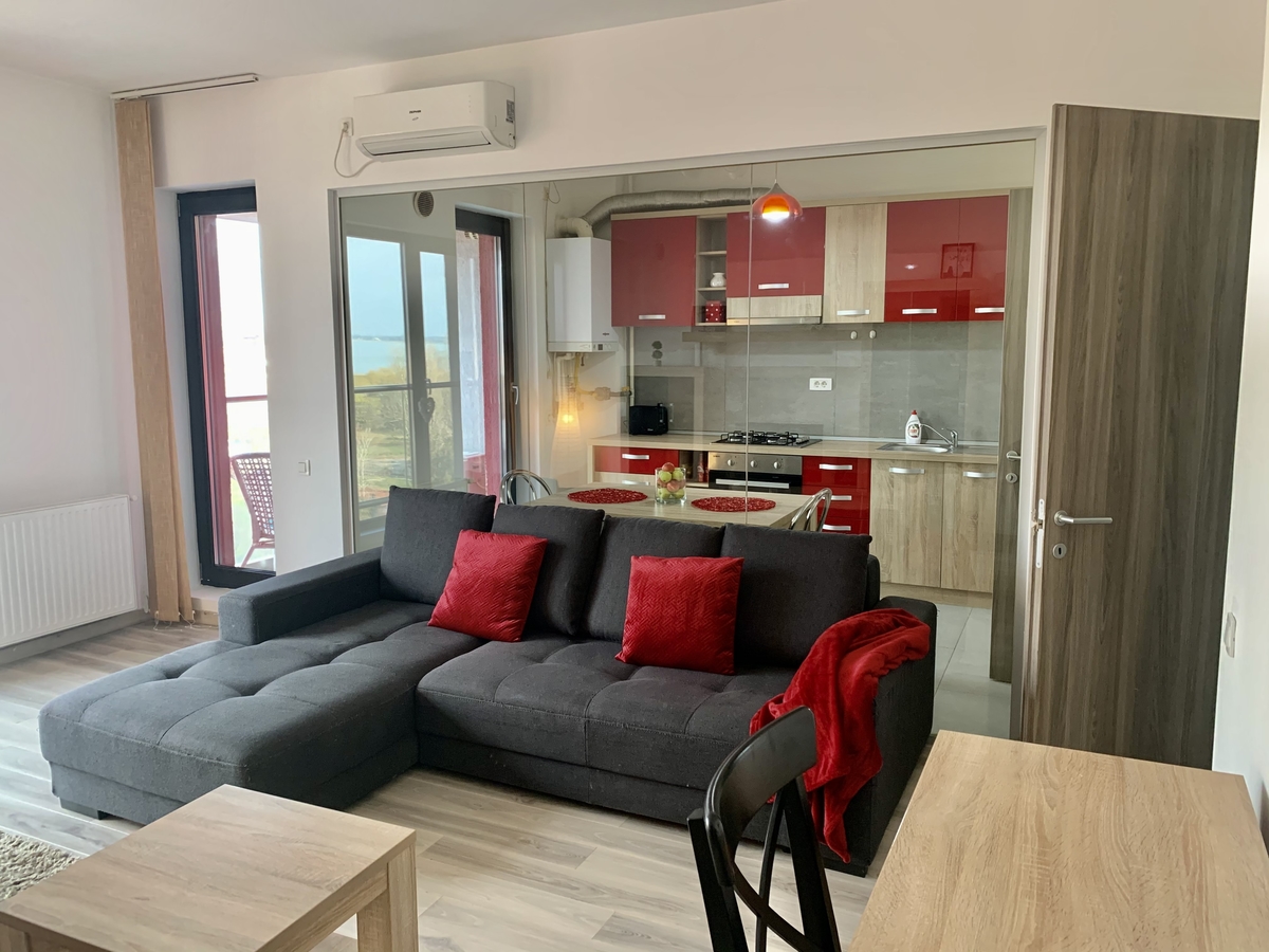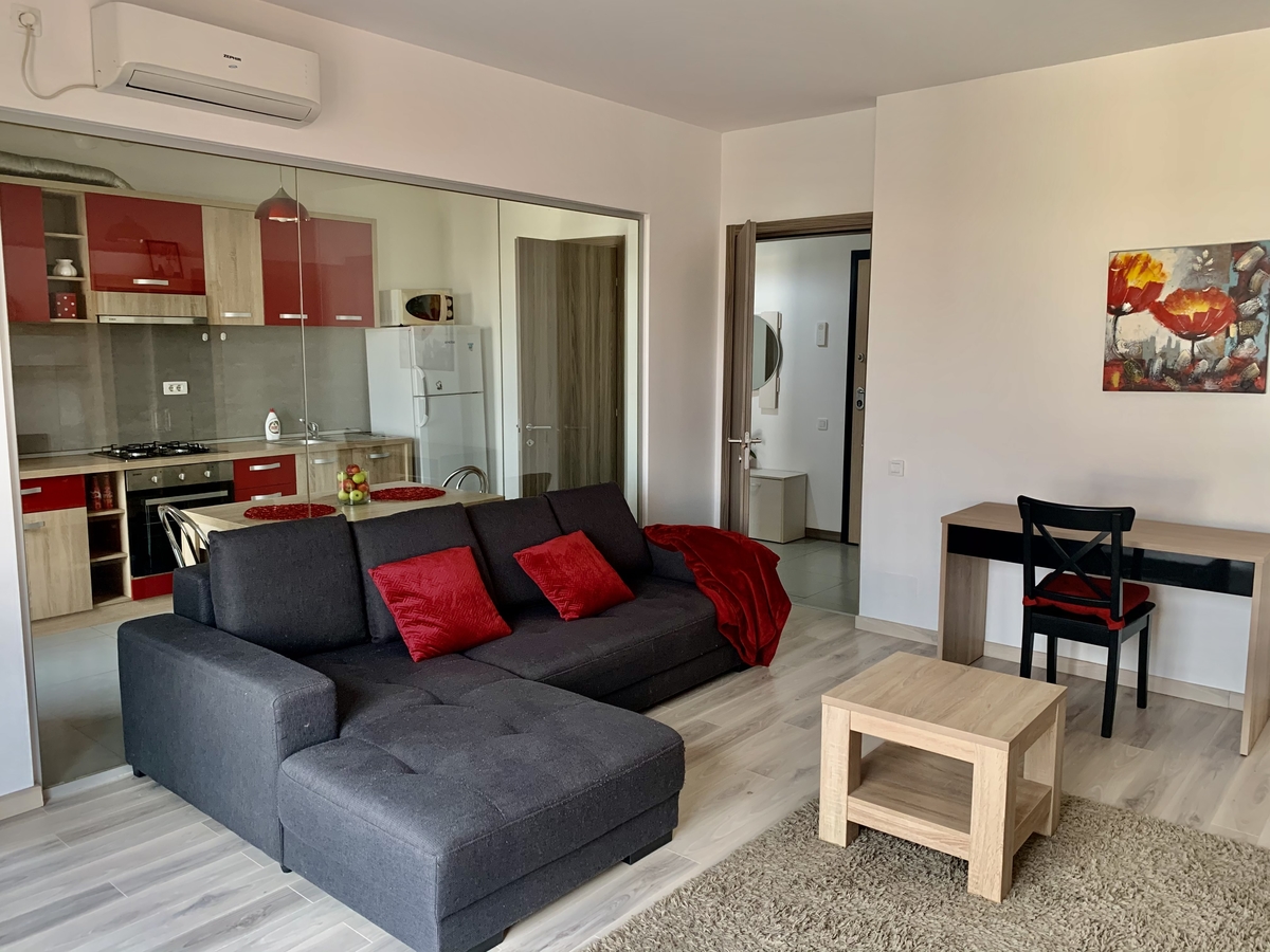 * Mobilat modern si utilat complet (centrala termica, frigider, cuptor, plita, masina de spalat rufe, LCD TV, aer conditionat,cuptor cu microunde, prajitor paine)