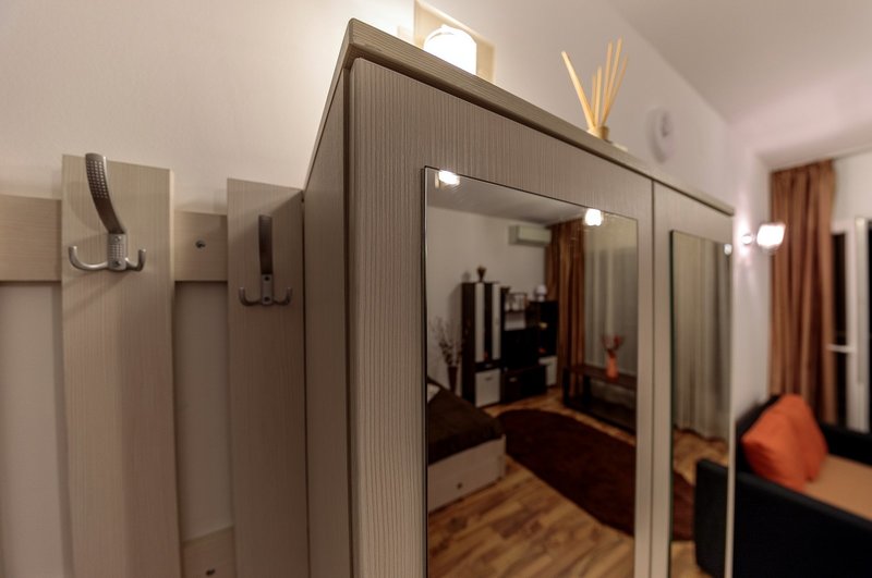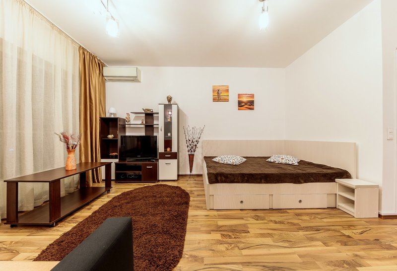 Etajul 4, complet mobilata (nou) si utilata (televizor full HD, aer conditionat, frigider, masina de spalat, cuptor cu microunde, plita pe gaz si cuptor electric, hota, accesorii bucatarie, scaune si masa balcon, dressing spatios, pat si canapea extensibila). Pret negociabil: 290 euro/luna (1 luna avans + 2 luni garantie).