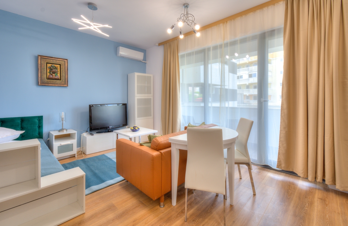 Confort lux, openspace, 35mp, etaj 1, balcon 5mp, mobilat complet, utilat: centrala proprie, masina de spalat vase, cuptor electric, plita gaz, cuptor cu microunde incorporat, frigider incorporat, aer conditionat Gree Wifi, TV, cablu, internet Digi.