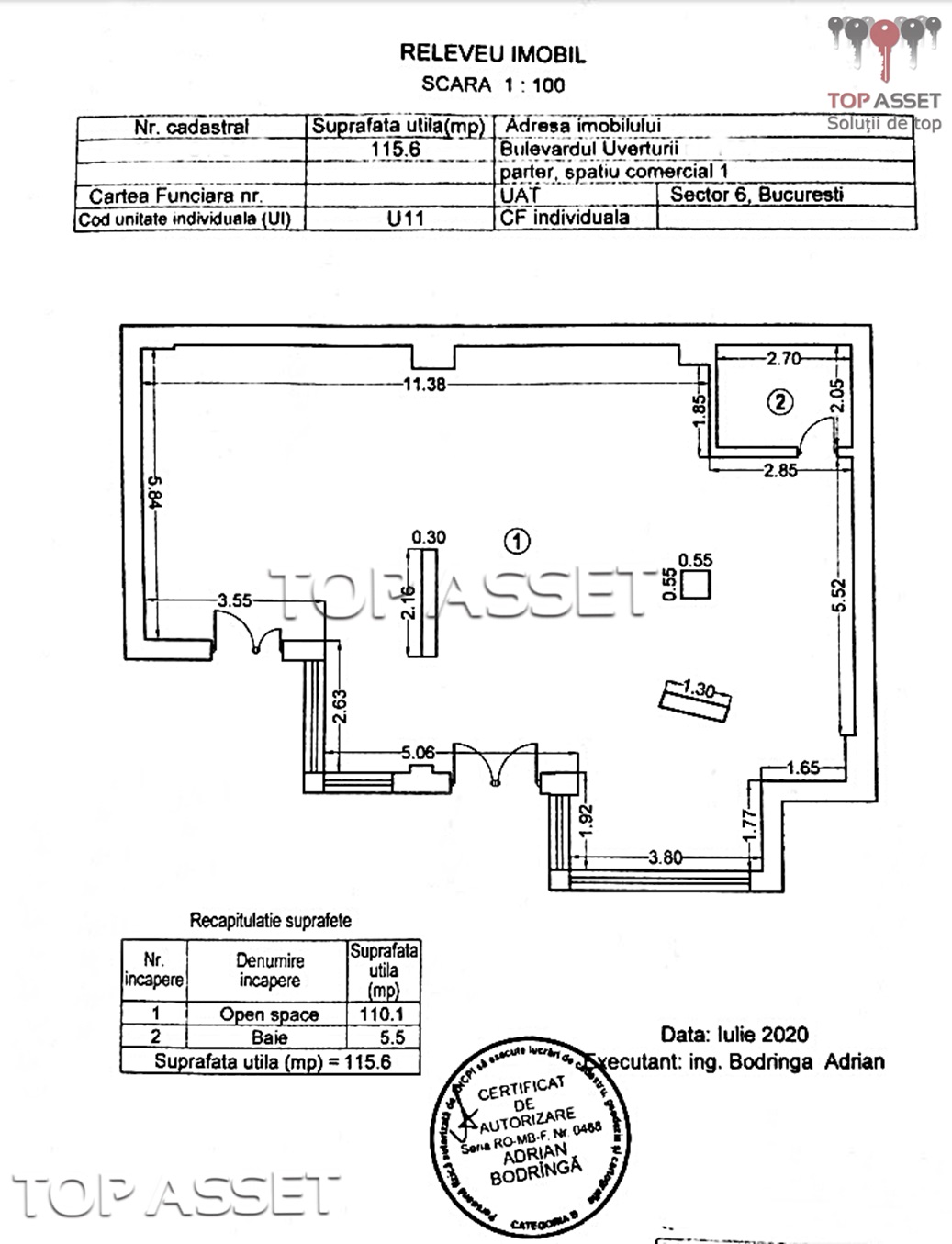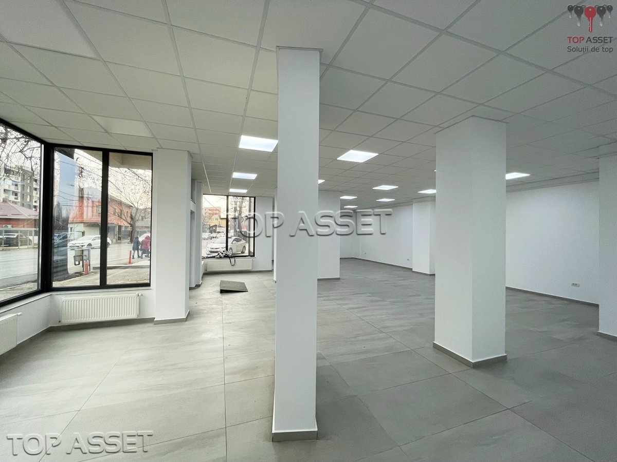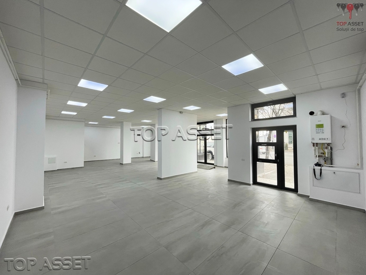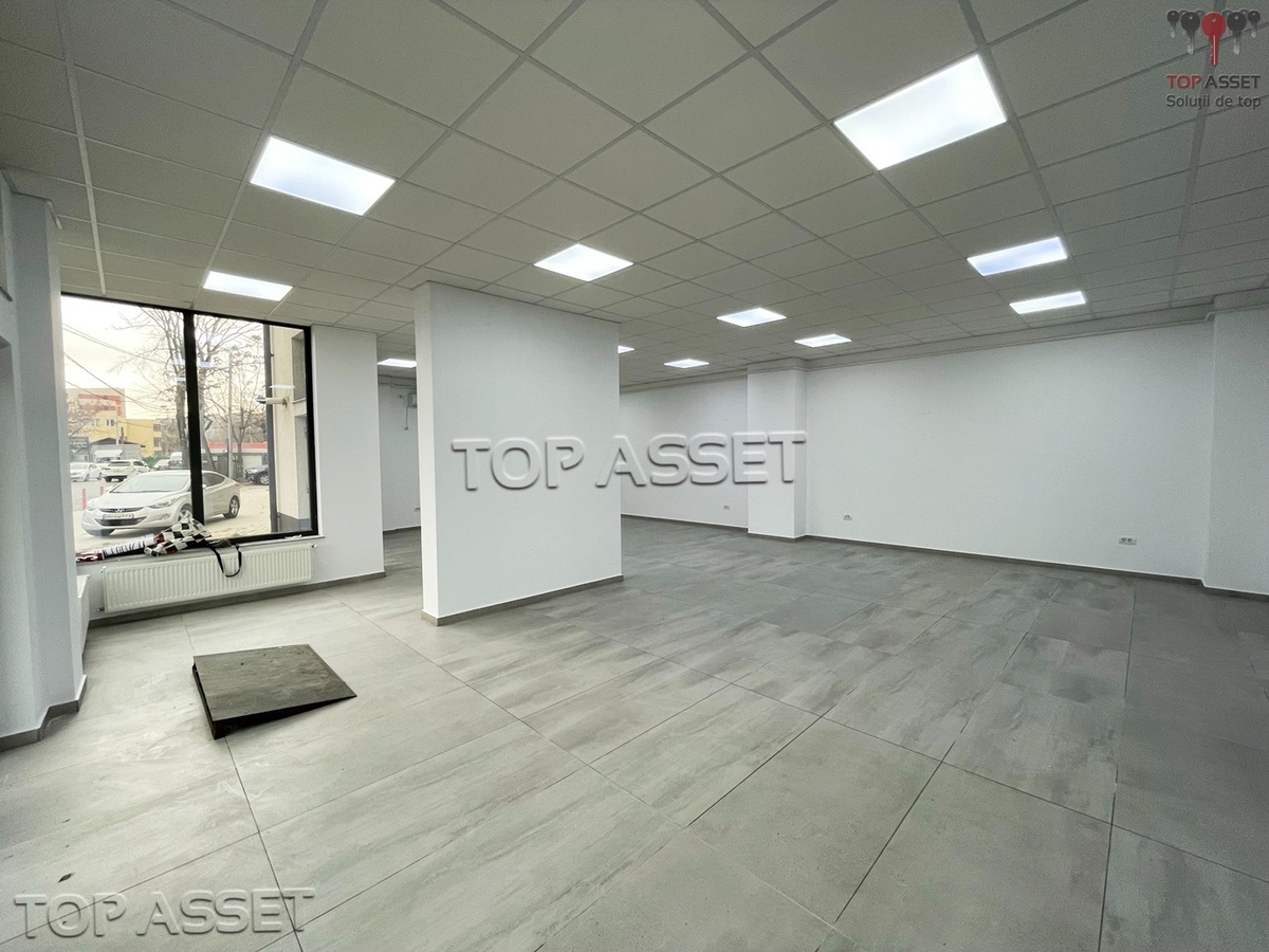 Spatiu comercial in suprafata utila de 116mp situat la intersectia bulevardelor Uverturii si Apusului, in fata statiei de autobuz. Spatiul este dotat cu centrala termica, aer conditionat, grup sanitar, 2 intrari si 3 locuri de parcare (in afara acestora se mai poate parca in parcarea magazinului Lidl situat chiar vizavi). Spatiul este ideal pentru orice activitate comerciala ce necesita trafic intens, expunere stradala mare si vecinatatea blocurilor, cum ar fi: orice tip de magazin, notariat, cabinet medical, cabinet stomatologic etc. Pret 2100 euro/luna.