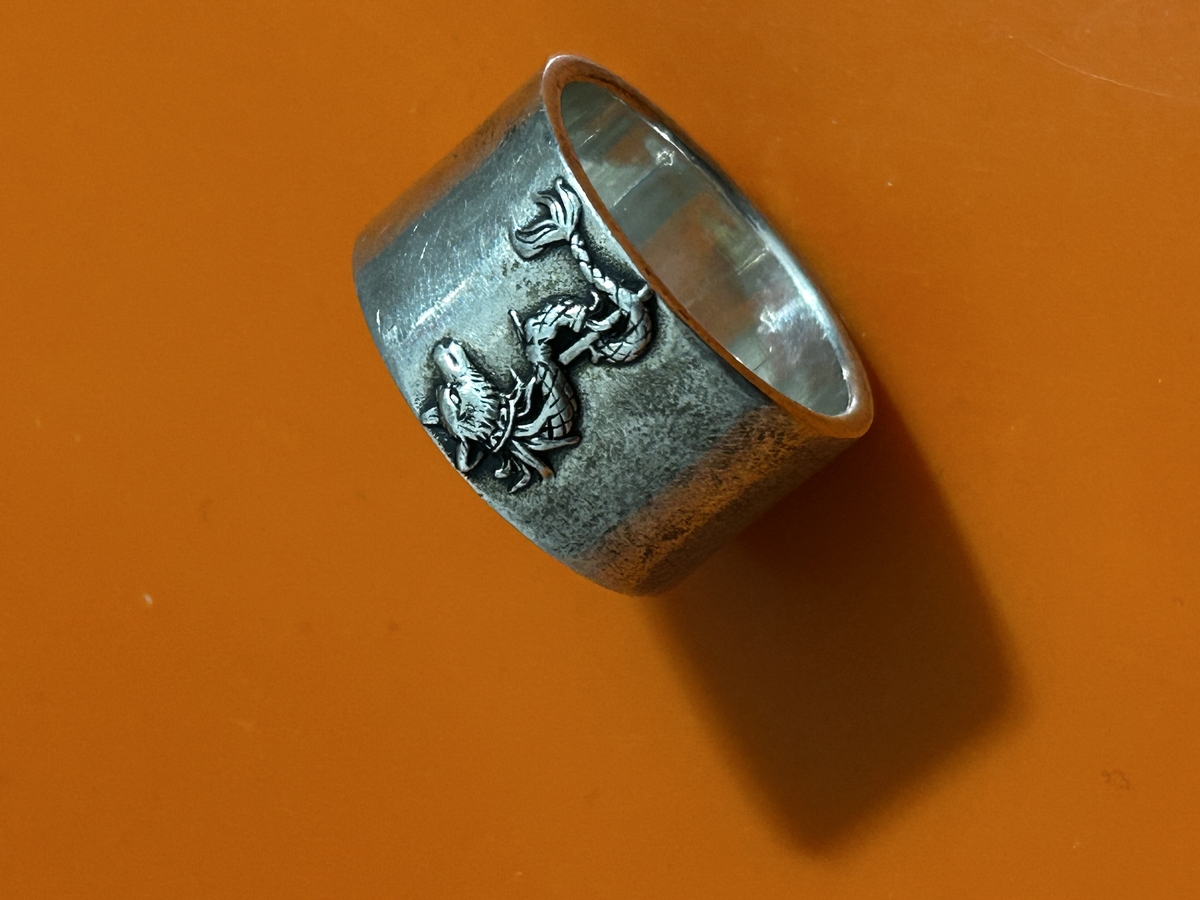 Inel barbatesc din argint. Lupul dacic - Zalmoxis.