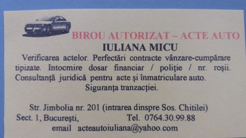Facebook- intocmiri acte auto, email acteautoiuliana@yahoo.com , Sos Chitilei, Sector 1, Bucuresti