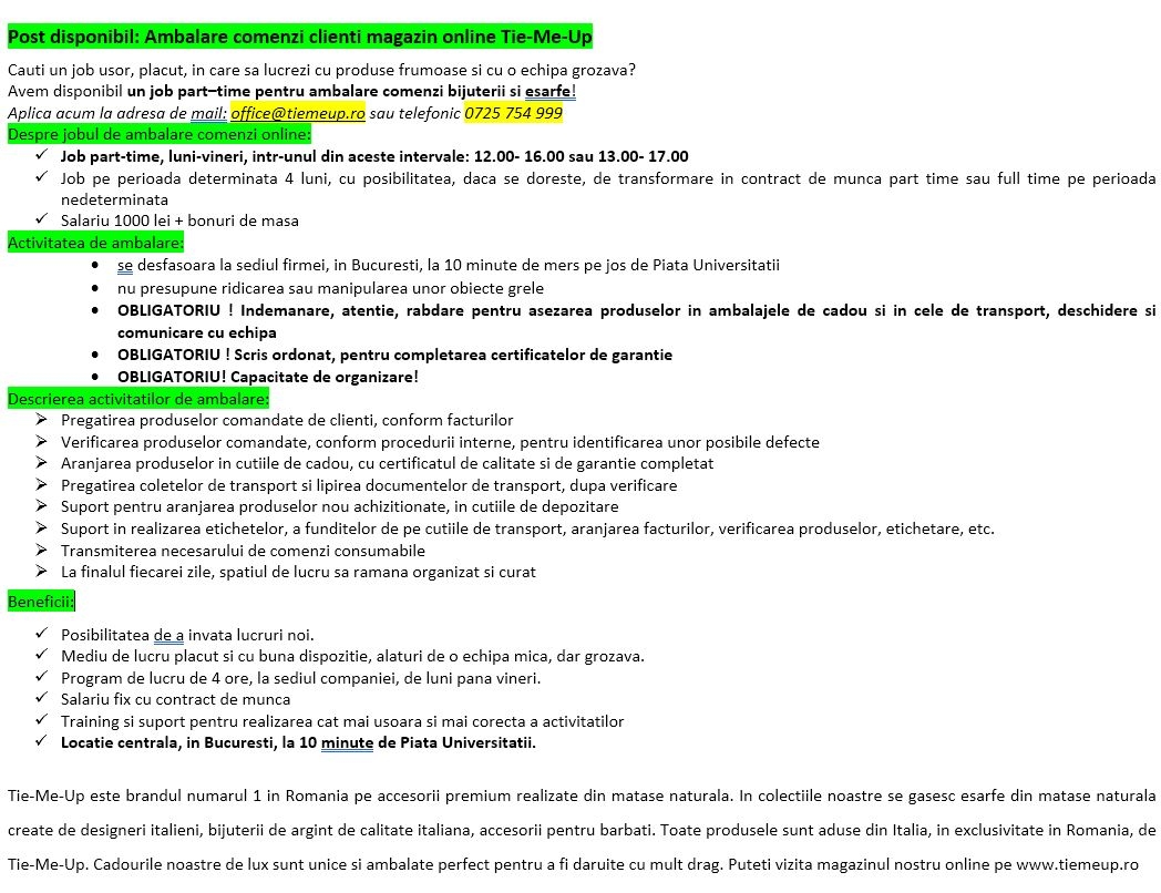 Post disponibil: Ambalare comenzi clienti magazin online Tie-Me-Up