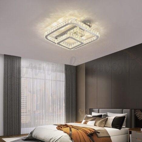 Lustra LED 108W Krystal Geometric, LED inclus, 2 surse de iluminare, Telecomanda, Dimabil, Lumina: C