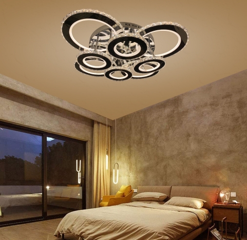 Lustra LED 296W Krystal 8, LED inclus, 8 surse de iluminare, Telecomanda, Dimabil, Lumina: Cald, Nat