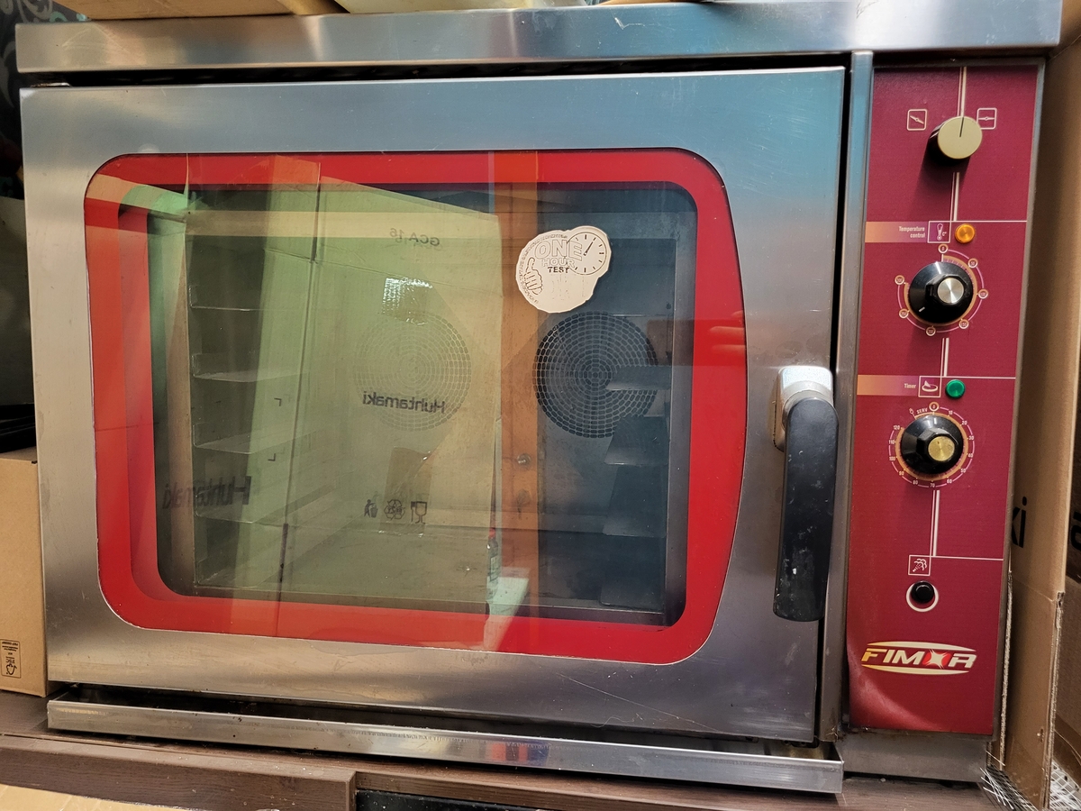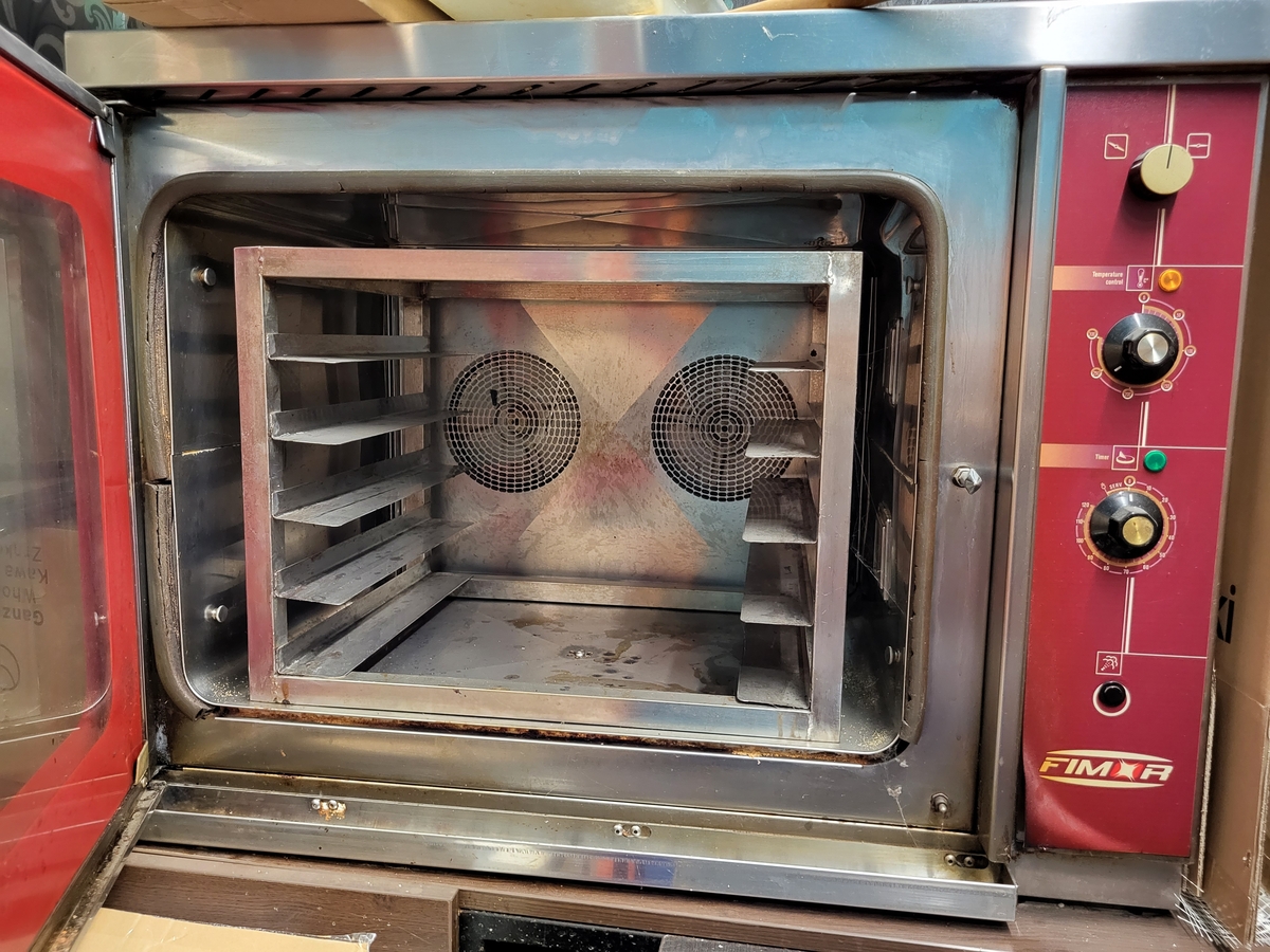 Cuptor patisserie 90x70x70 cm, alimentare 380 V, dimensiune tavi 60x40 cm. Pret: 900 euro.