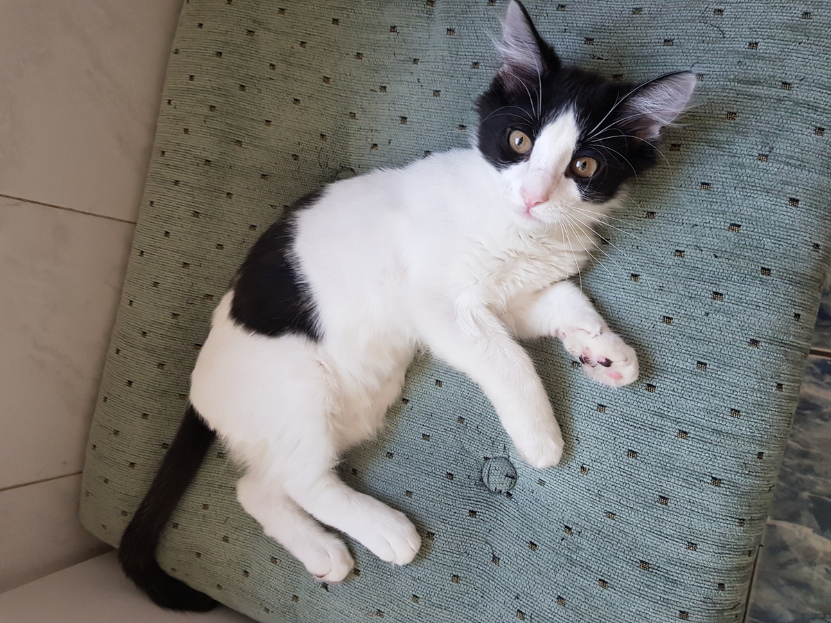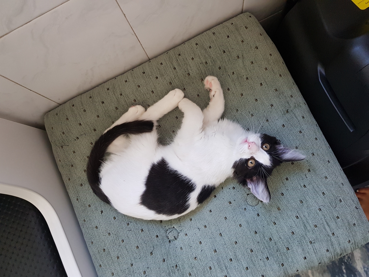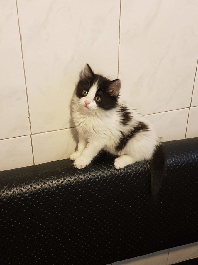 Pisica fetita in varsta de 4 luni. Bănuiesc că ar fi metis cu persană pt ca atunci cand am gasit o avea blanita foarte mare. Vezi primele poze. Este tunsa momentan si nu se mai vede la fel.