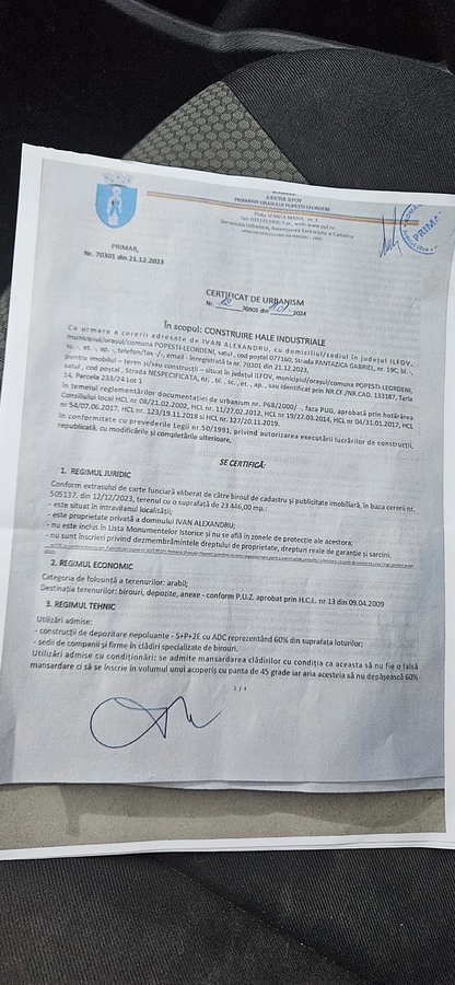 Buna ziua, s-a pierdut certificat urbanism, nr.12 din 11.01.2024, eliberat de Primaria Orasului Popesti-Leordeni