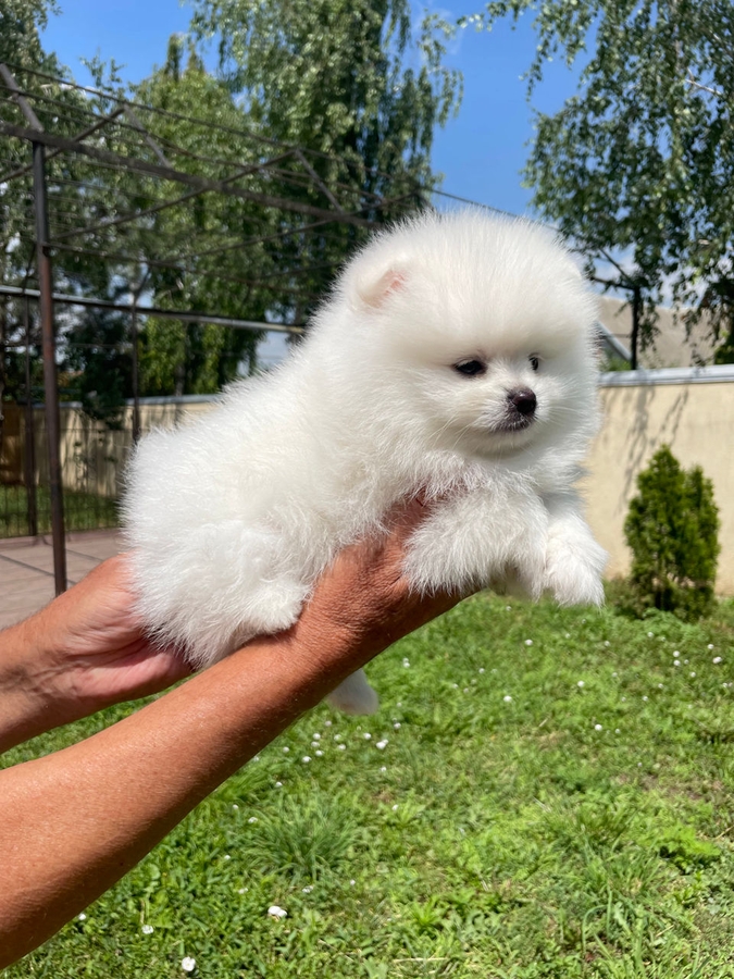Spit Pomeranian alb, 2 luni si doua saptamani, vaccine, cip, pasaport!!!