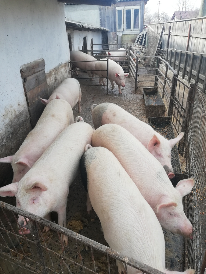 Vand porci rasa pentru carne, crescuti in gospodarie taraneasca, bio. Greutate cuprinsa intre 100 kg si 110 kg. Pretul este de 11 lei kg. Se poate face si rezervare pentru Craciun cu un mic acont,