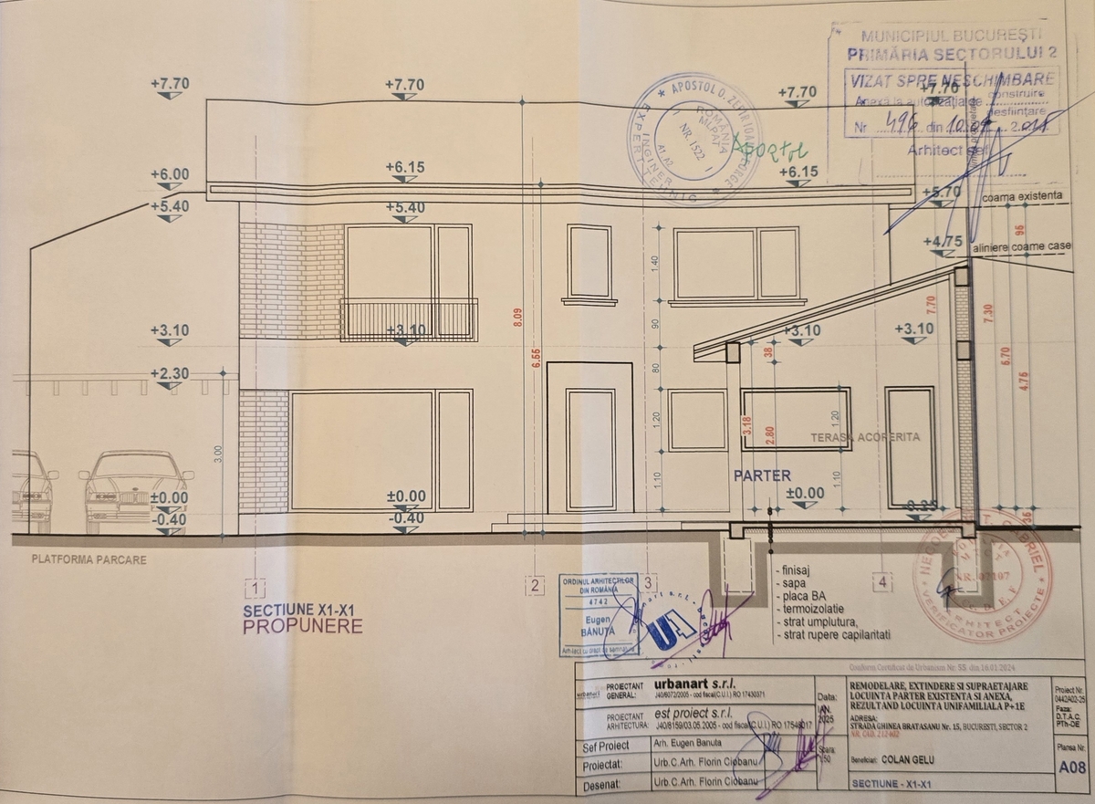 b) Executarea lucrarilor de construire pentru: remodelare, extindere si supraetajare locuinta parter existenta si anexa, rezultand o locuinta unifamiliala P+1