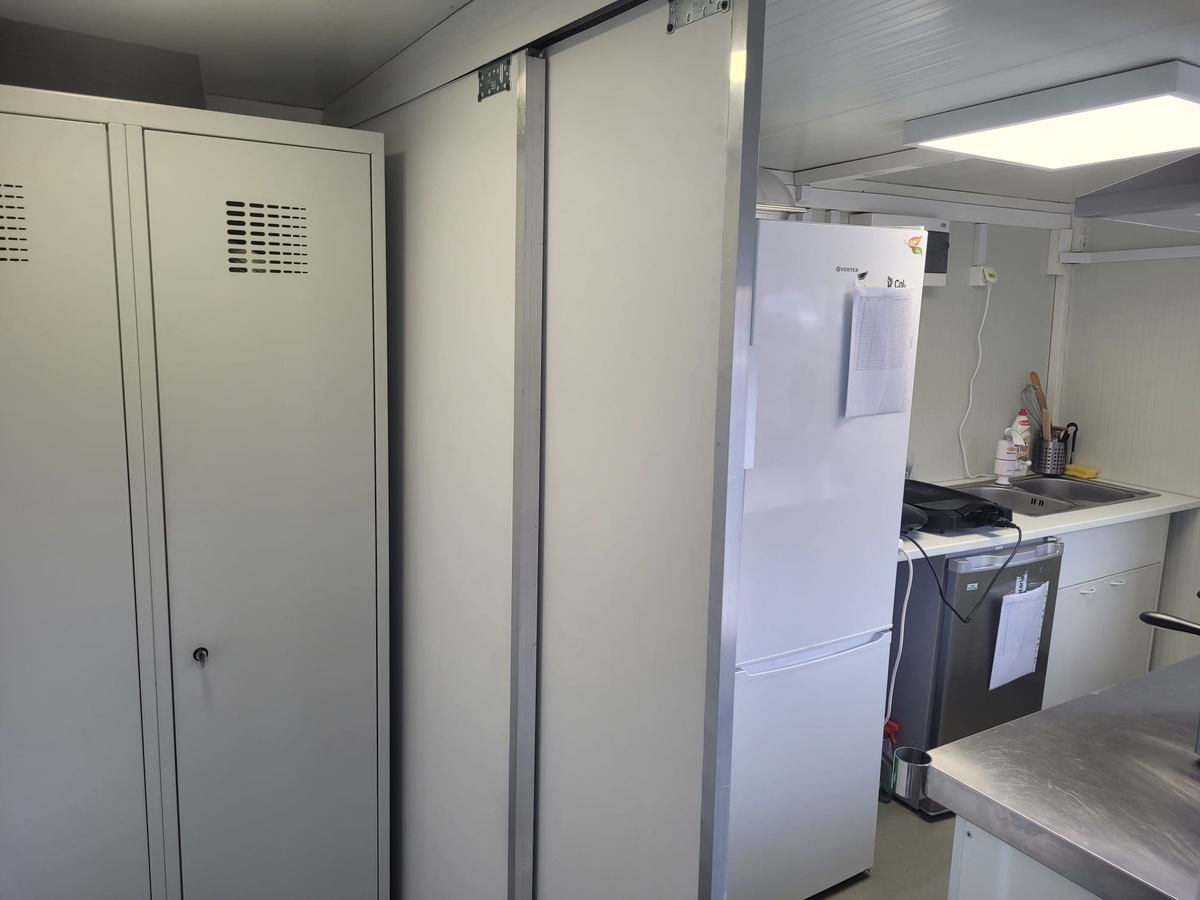Containerul are 8 mp (4X2), este o constructie usoara din panouri sandwich pe structura metalica cu urmatoarele dotari: