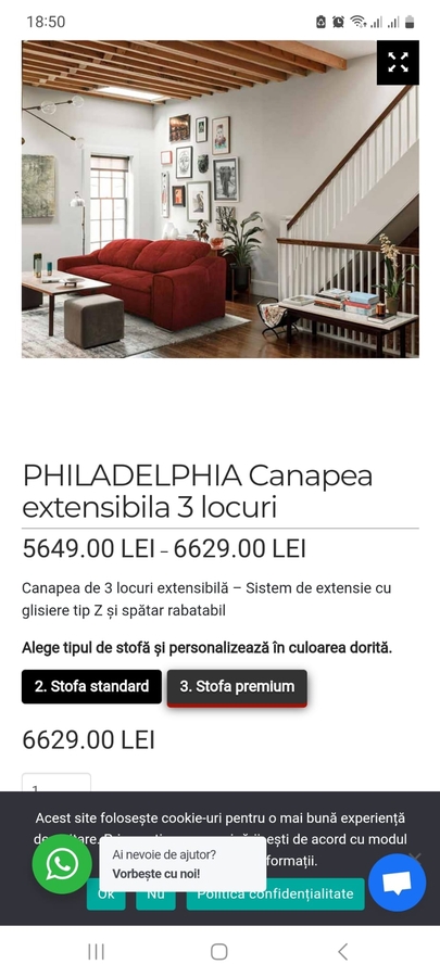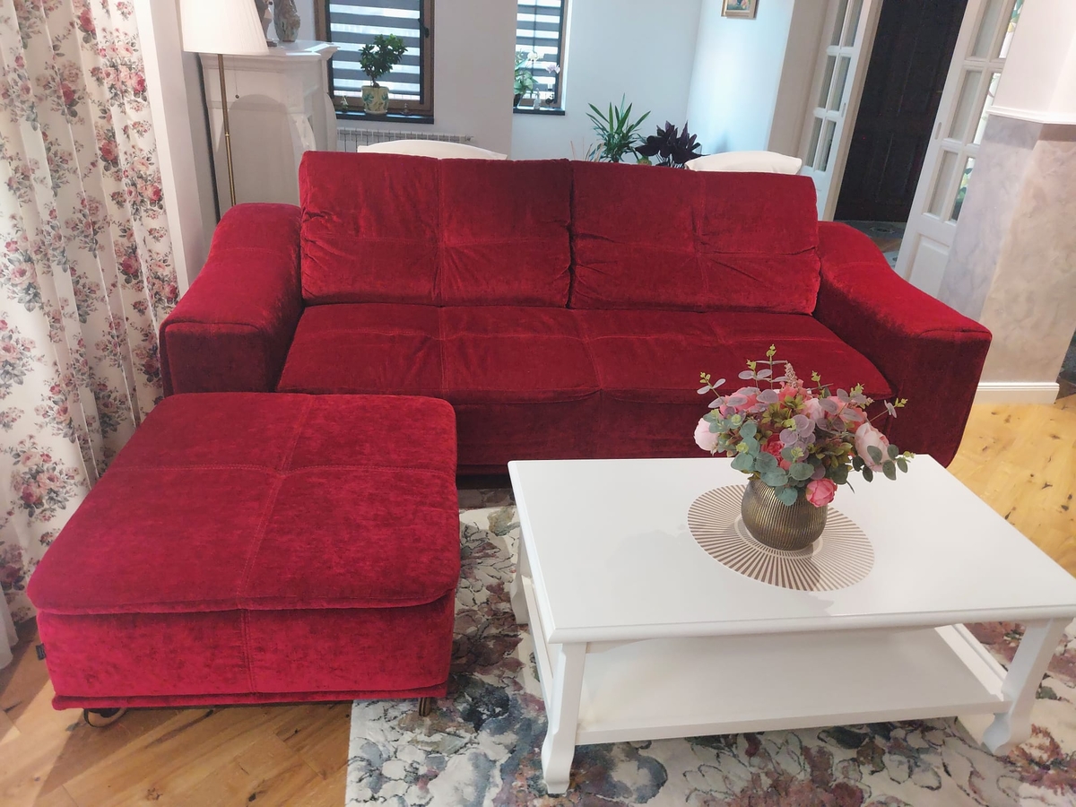 - canapea extensibila Philadelphia 3 locuri - sistem de extensie cu glisiere tip Z si spatar rabatabil din stofa Premium nuanta Rosu Bolshoi 50 Cardinal cu Ata 09