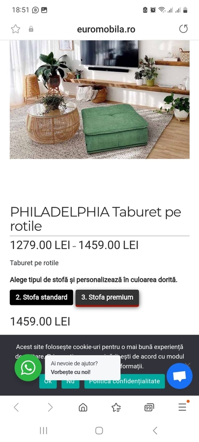 - taburet pe rotile Philadelphia din stofa Premium nuanta Rosu Bolshoi 50 Cardinal cu Ata 09
