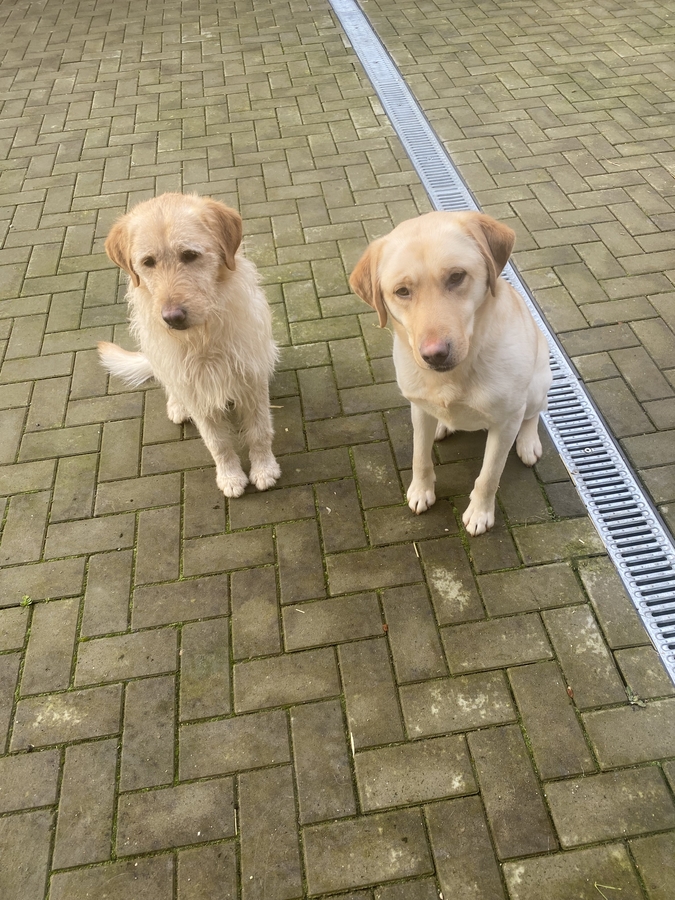 unu este labrador iar celalalt este un golden. Au 3 vaccinuri si sunt deparazitati, au chip, au carnet de sanatate. Ii vand pentru ca plec din tara si nu am cine sa se ocupe de ei, la pretul de 500 Lei pe amandoi