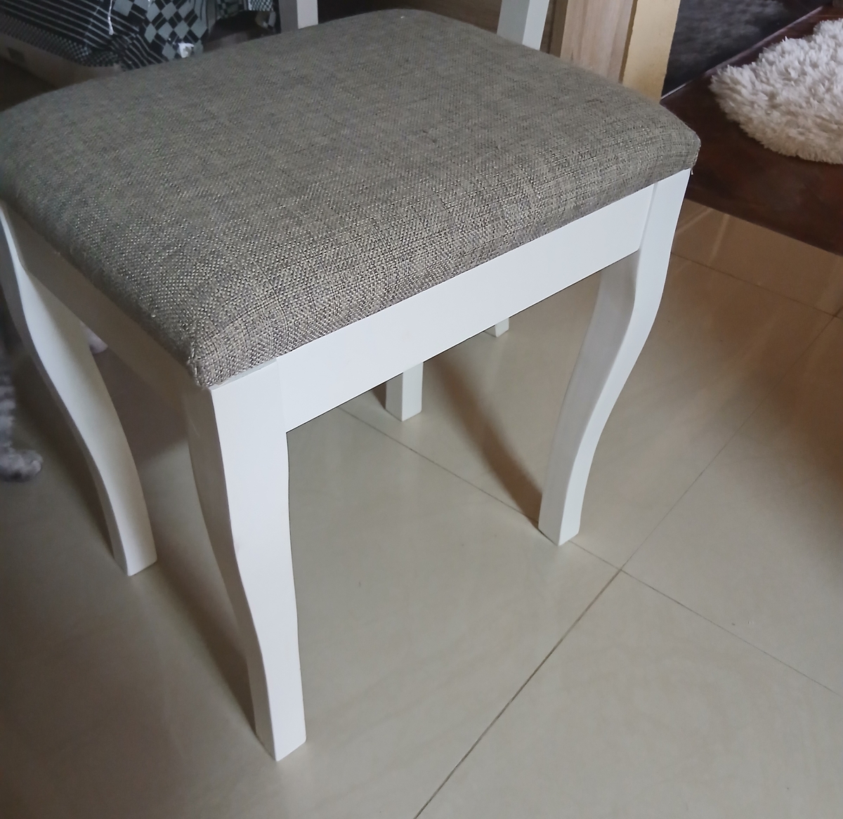 Vand masuta de make-up din lemn alb eleganta cu scaunel tapitat.
