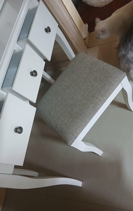 Vand masuta de make-up din lemn alb eleganta cu scaunel tapitat