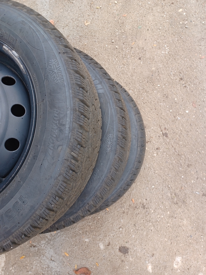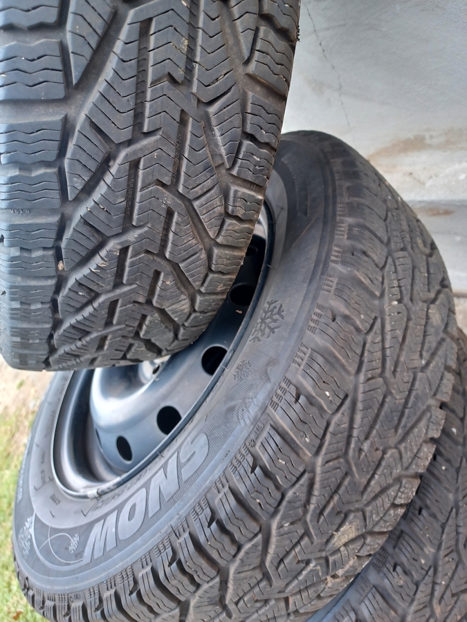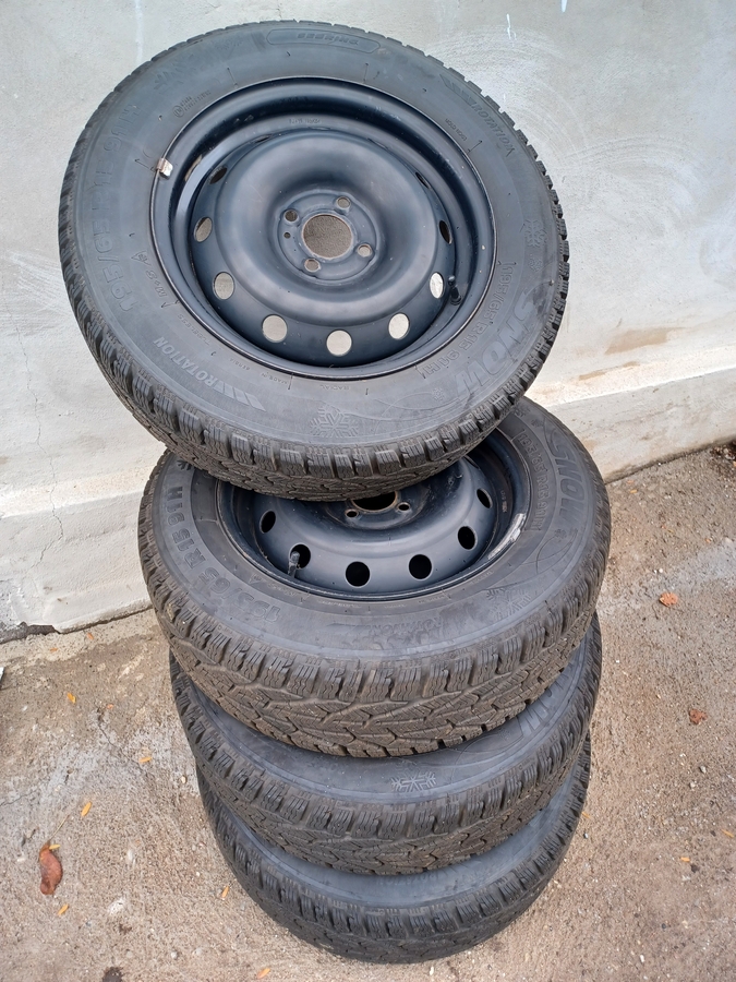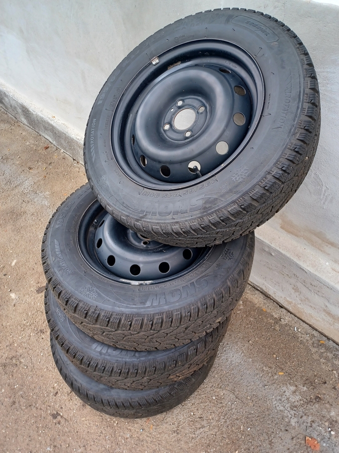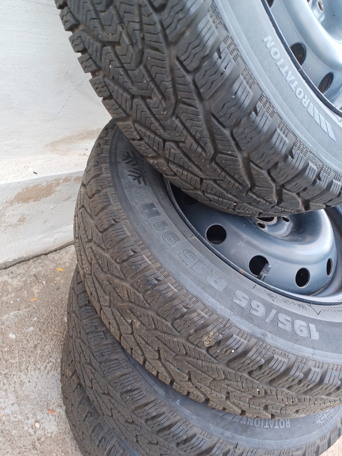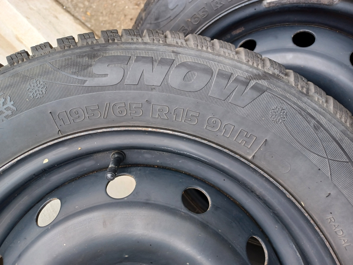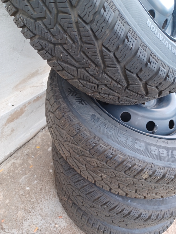 Vand set roti cu 4 prezoane prinderea, pe dimensiuni 195/65/R15 radial, cu jante aprope noi, echipate cu anvelope de iarna made in Serbia, ca si noi, utilizate foarte putin.