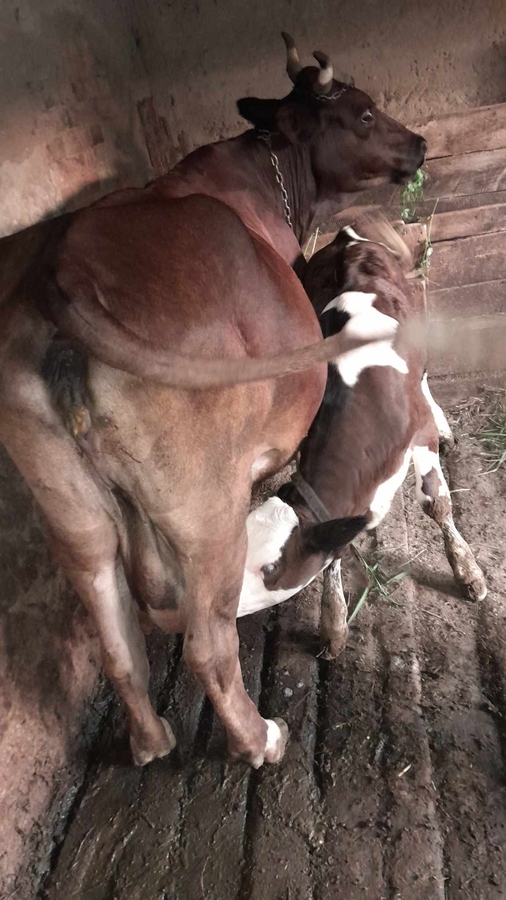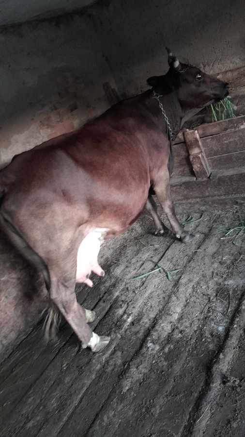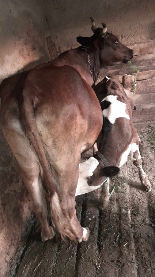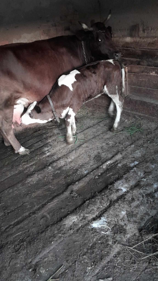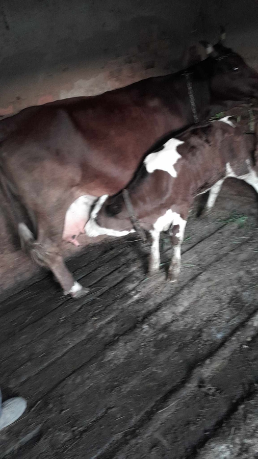 Bunicul meu isi vinde vacuta cu tot cu vitea de 2 luni. Mai multe detalii telefonic.