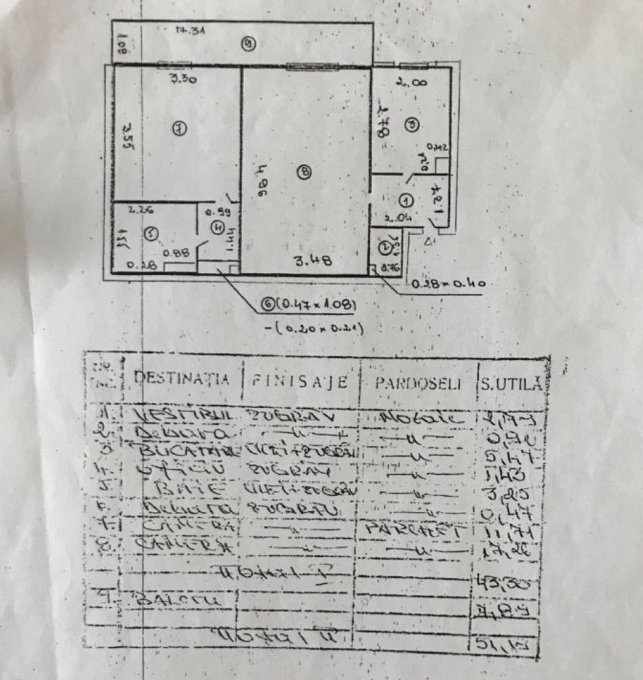 Alcatuit din 2 camere si dependinte, tip apartament semidecomandat, suprafata utila 46 mp, suprafata construita 51 mp.