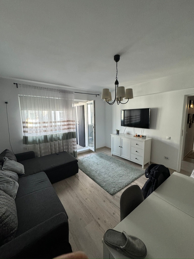 Apartament 2 camere foarte primitor, mobilat si utilat cu bun gust! Apartamentul dispune de 2 aere conditionate si se vinde exact ca in poze cu balcon inchis in care se afla 2 debarale pentru depozitare.