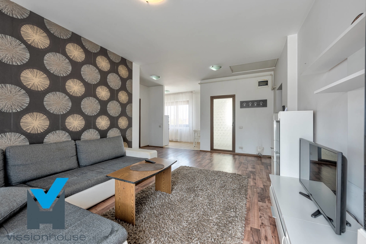 Apartamentul este la etajul 5/P+5, are o suprafata utila totala de 54mp compartimentat astfel: living, bucatarie inchisa, dormitor, baie si o logie inchisa.