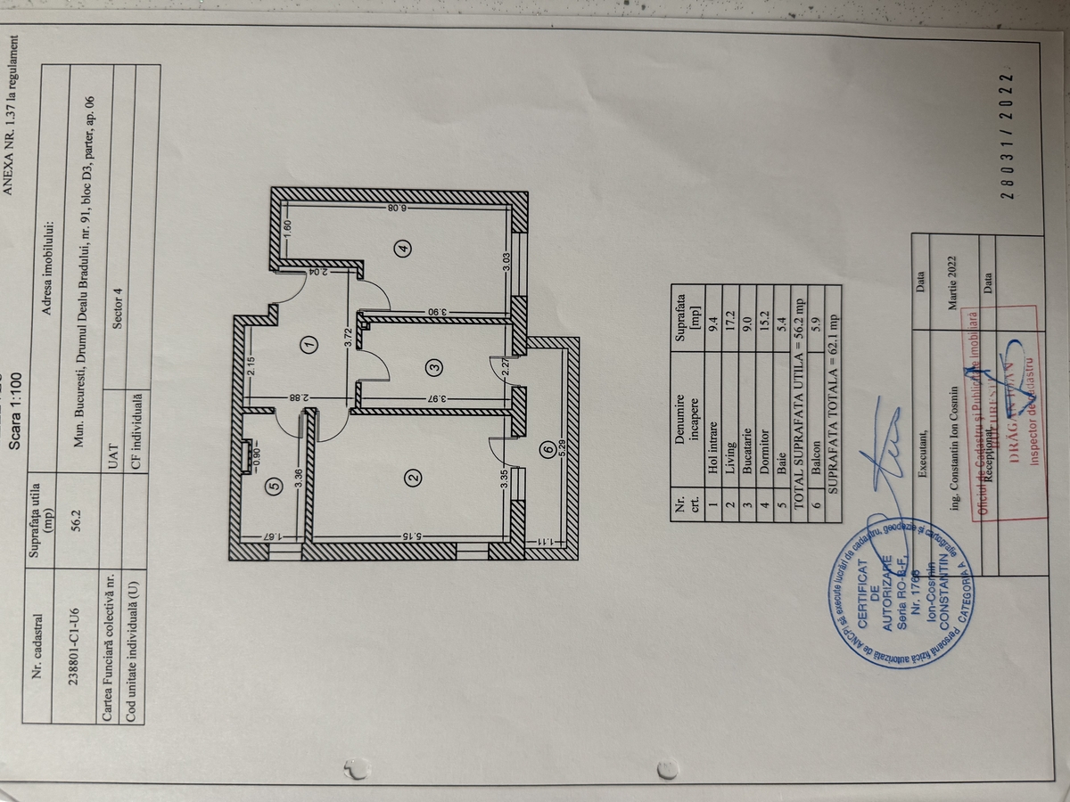 vand apartament 2 camera la parter intr-un bloc nou cu 8 etaje, cu suprafata totala de 62.1 mp, utila 56.2 mp + balcon 5,9 mp, in sectorul 4 Berceni ‘ Drumul Dealul Bradului ‘. In pret este inclus si loc de parcare!