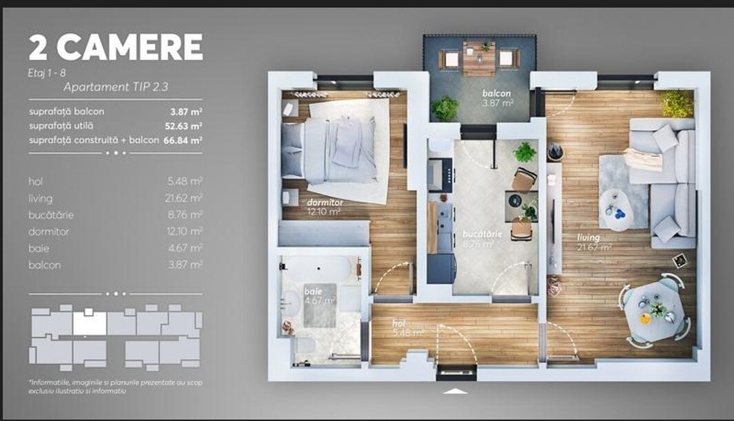 Pret apartament : 68.500 Euro (TVA inclus)