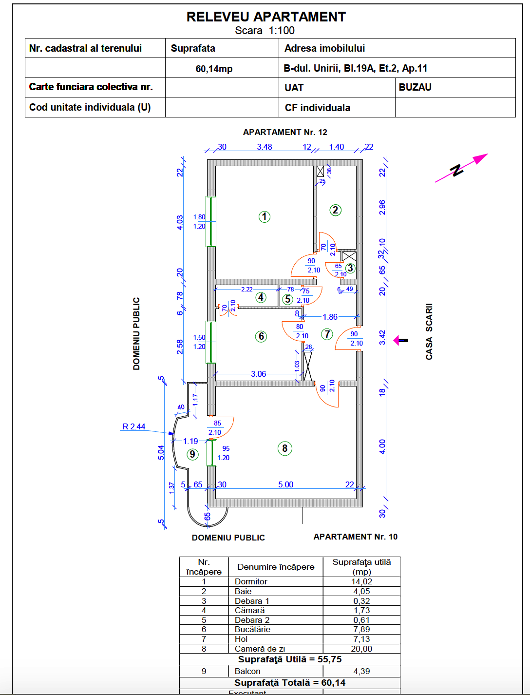Optiuni interior: Apometre Balcon Debara Repartitoare caldura Termopan Usa metalica
