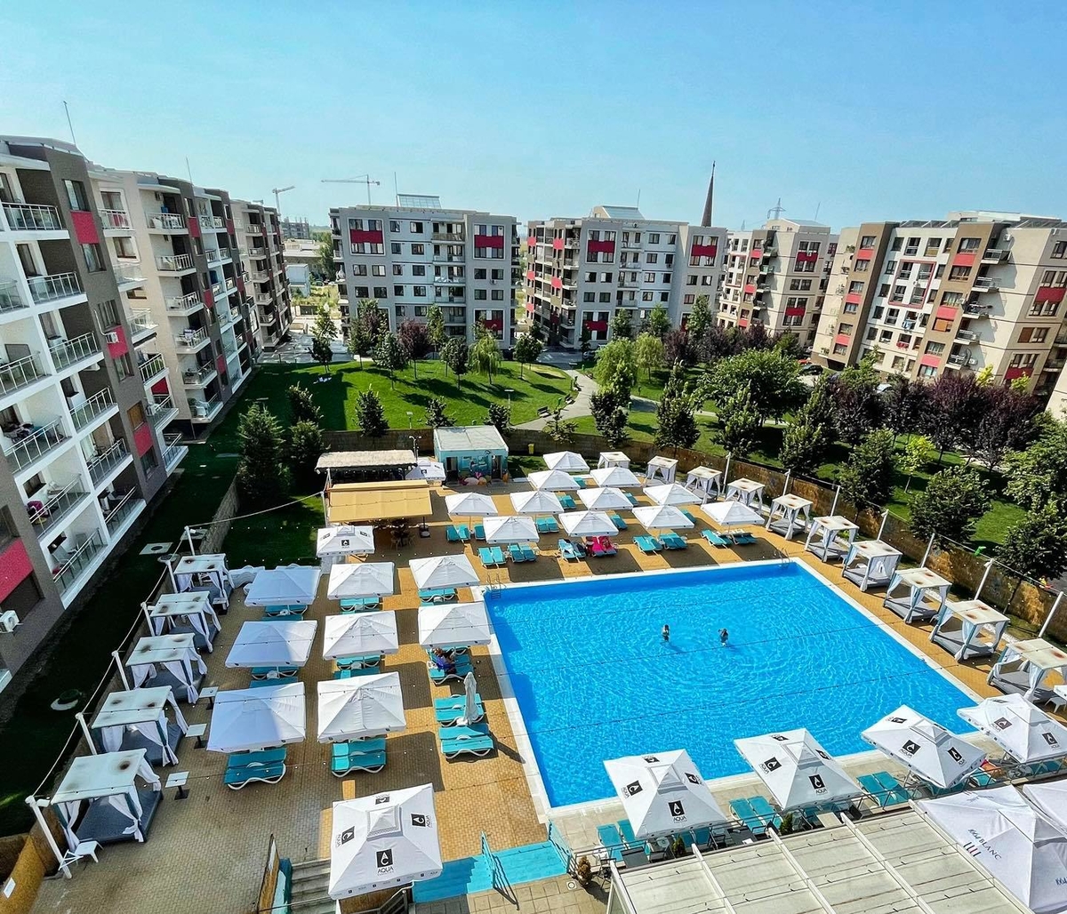 Cartierul dispune de paza, supraveghere video, bariere de acces, locuri de joaca, parc, piscina, easy box, magazine, farmacie, restaurant si salon de infrumusetare.