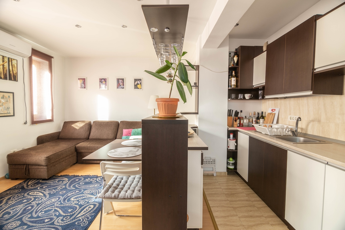 Apartament cu 2 camere, in bloc cu P+2+Mansarda (an constructie 2010), curte proprie, complet mobiliat si utilat. Pret usor negociabil.
