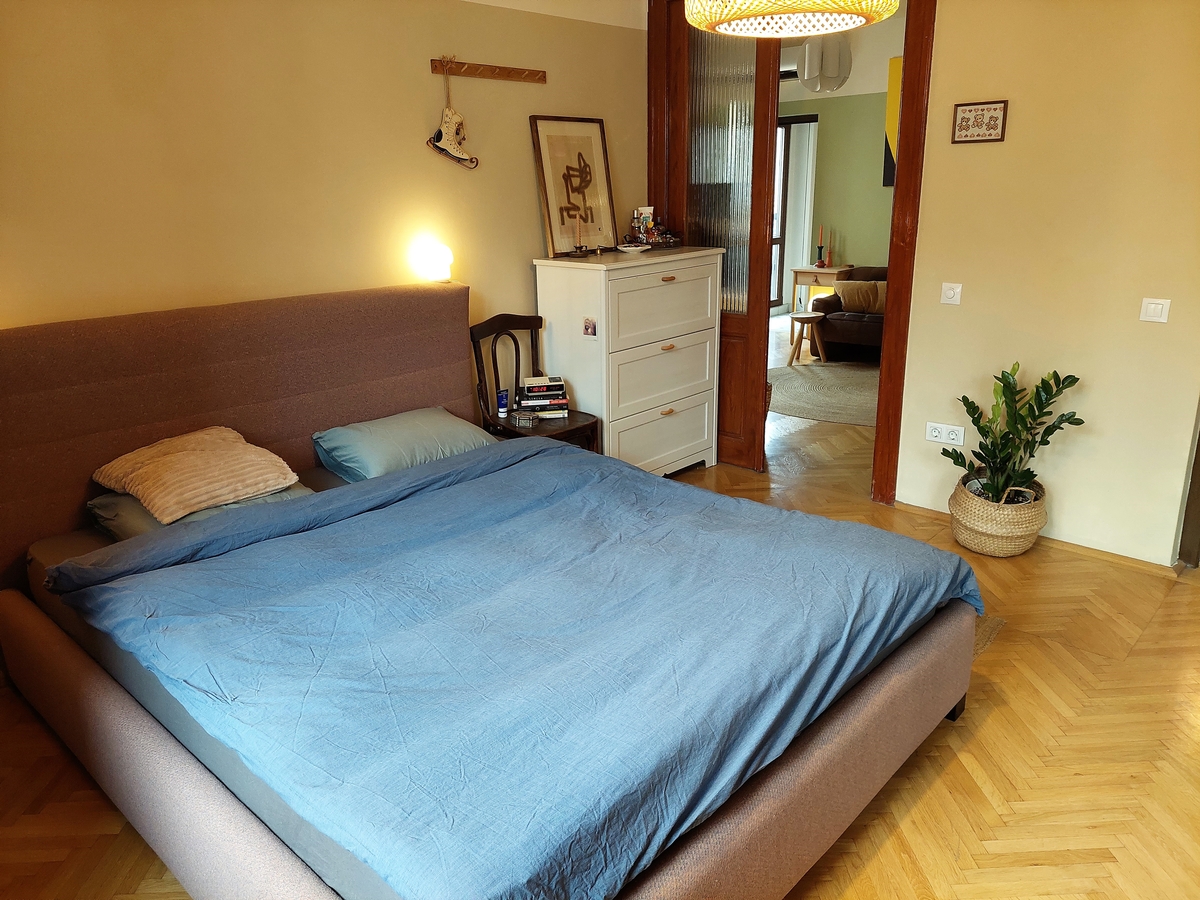 Odata ajunsi la etaj, aerul boem din perioada interbelica in care s-a construit vila isi face simtita prezenta, ajutat desigur si de amenajarea interioara a apartamentului. Te simti ca acasa...