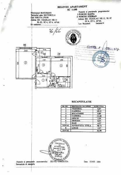 Adresa: Bucuresti, str. Ceahlau, nr. 13, bl. 82, sc. 4, et.4 din 4, ap. 66, sector 6