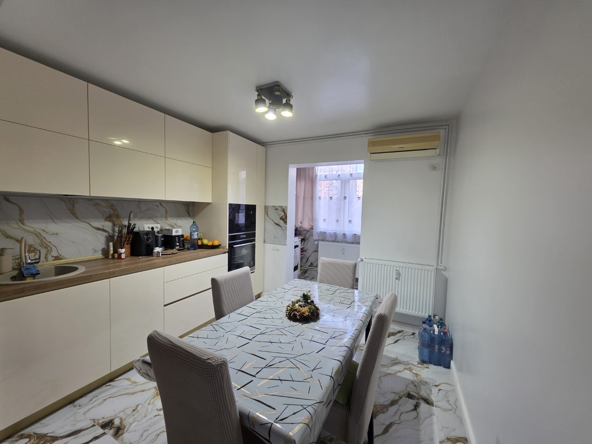 Apartamentul este decomandat, complet mobilat si utilat, are gresie, faianta, parchet, termopane, usa metalica, usi interioare noi, masina spalat, frigider.