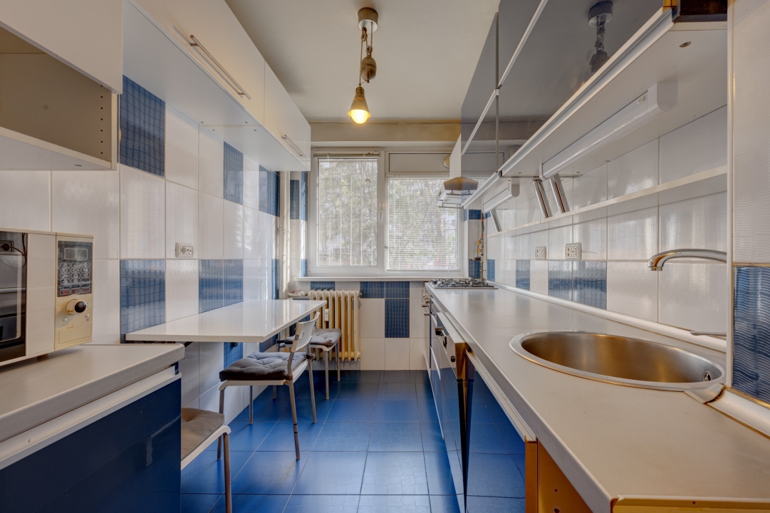 Apartamentul este semidecomandat, are o suprafata de 50 mp este situat la parter/10, intr-un imobil reabilitat termic. Imobilul este construit in anul 1965 si nu figureaza pe listele imobilelor cu risc seismic. Apartamentul are toate ferestrele cu geam termopan si tamplarie PVC, parchet din lemn masiv in camere, usi interioare inlocuite. Este dotat cu 1 aparat de aer conditionat iar pentru incalzire este conectat la termoficare.