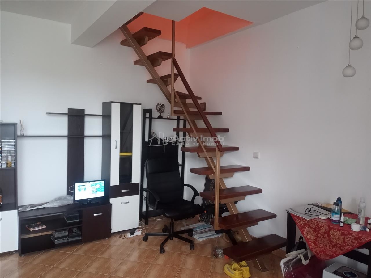 - apartament din 2011, tip duplex- cu scara interioara. Nivelul 1: living cu bucatarie deschisa, o toaleta de serviciu, balcon; Nivelul 2: dormitor, hol, baie cu cabina de dus