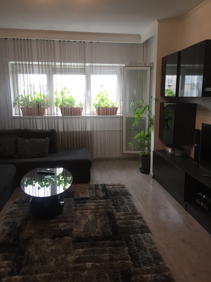ap. 2 camere decomandat, renovat cu termopan, gresie, faianta, parchet, 2 balcoane, mobilat- utilat integral, zona linistita, constructie deosebita.