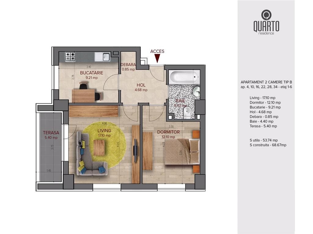 Drumul Taberei, 53 mp utili, Quarto Residence