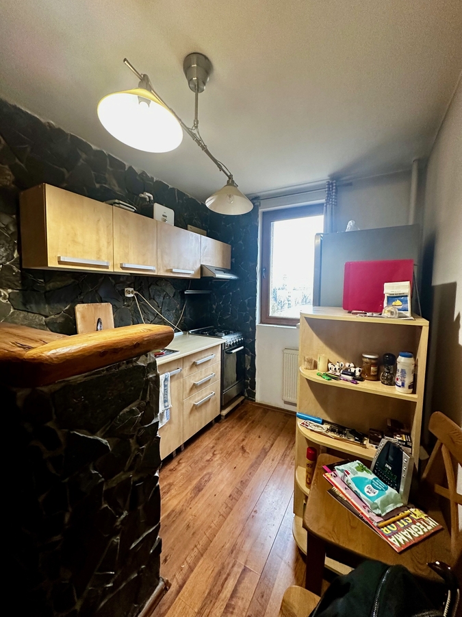 Apartamentul dealungul timpului a fost amenajat conform gusturilor proprietarilor, avand parchet laminat de buna calitate, aer conditionat, termopan in cularea lemnului, riflaje, iar usa de la intrarea in apartament schimata cu usa metalica.