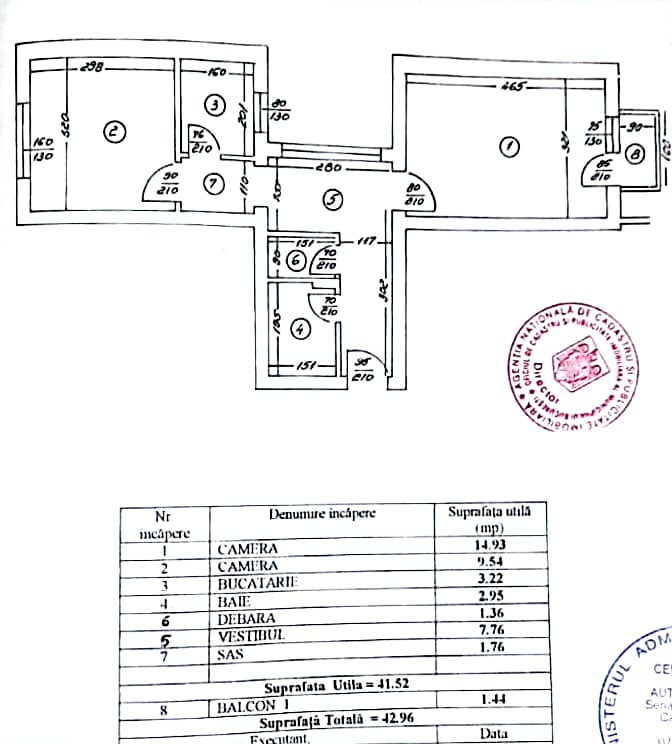 Acesta este apartamentul, format din 2 camere si dependinte, avand o suprafata utila de 43 de mp(schita este atasata), situat la etajul 5 din 10 pe o scara de bloc curata si modernizata, cu lift nou si diverse imbunatatiri la interior printre care enumeram geamuri termopan, usi de interior schimbate, usa metalica, gresie si faianta. Asa cum am precizat, apartamentul se bucura de o localizare excelenta, orice punct de interes al cartierului fiind apropiat.