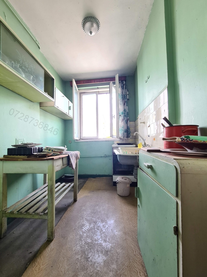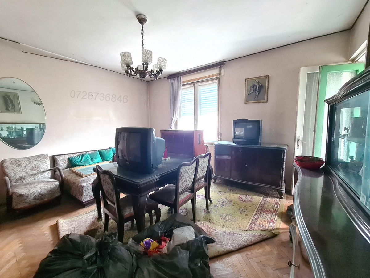 la etajul 2 al unui bloc tip vila de 2 etaje + pod, dec, 48 mp utili, 51 mp cu balcon, geam la baie, incalzire pe sobe (usor de montat centrala), necesita renovare totala, garaj si boxa in proprietate,