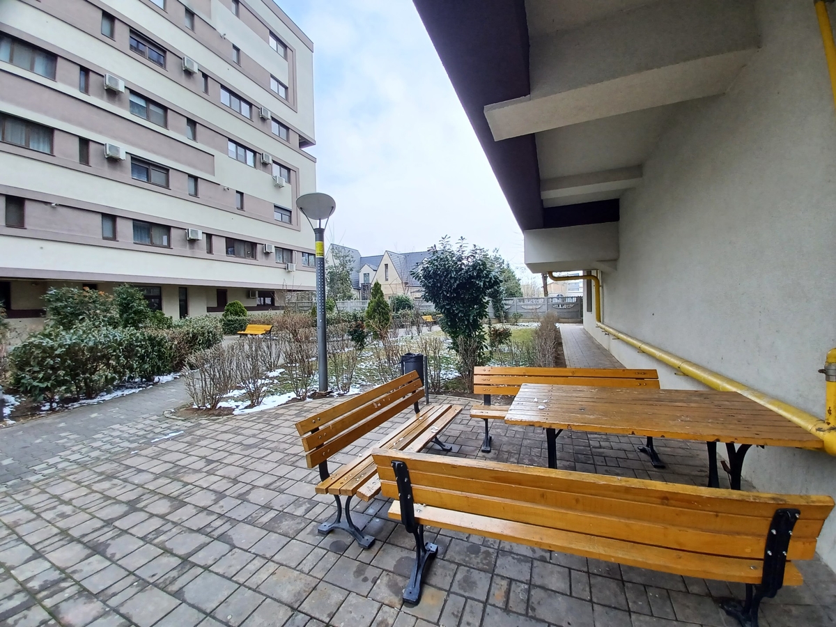 Intregul complex rezidential dispune de spatii verzi, amenajate cu mese si bancute, unde va puteti recrea in orice moment.