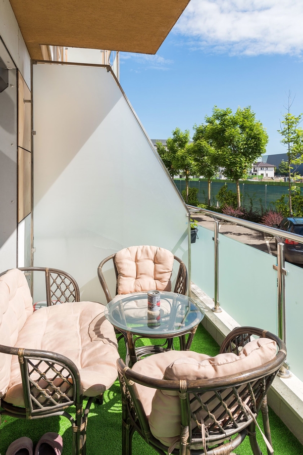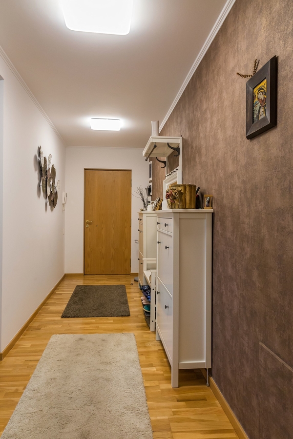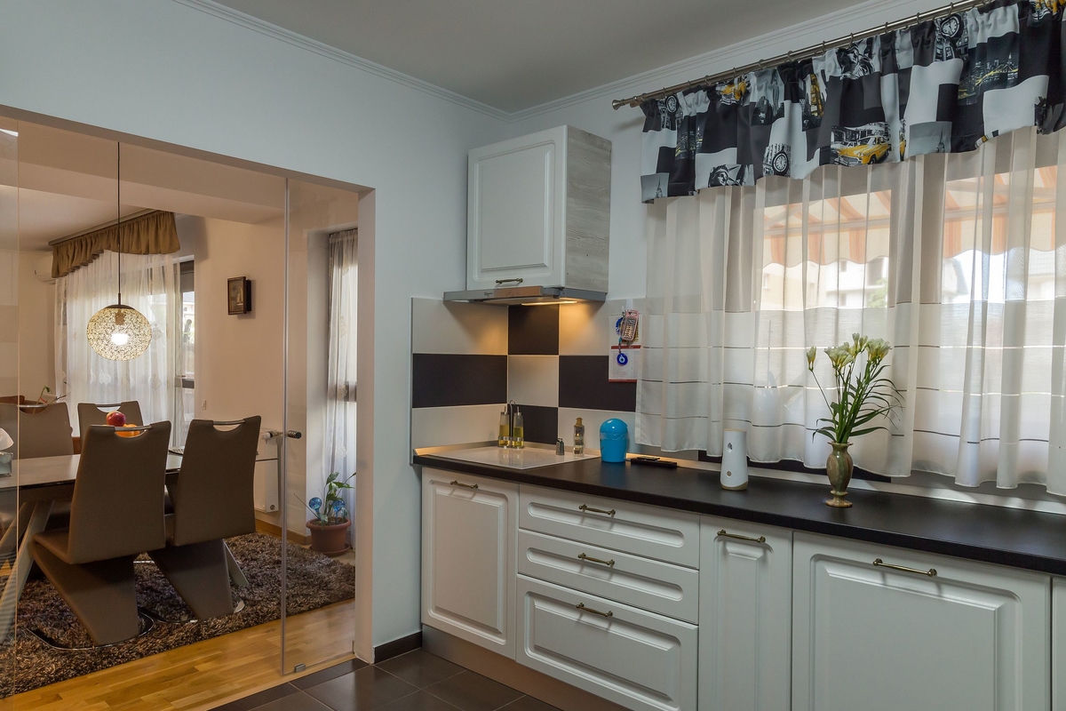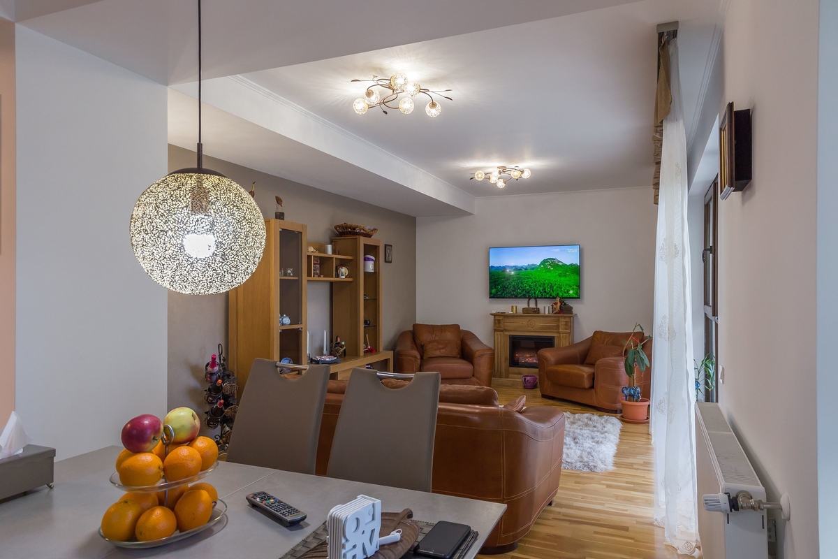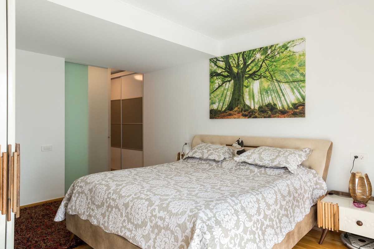 A fost amenajat cu rigurozitate si iscusinta, atat in ceea ce priveste finisajele, cat si dotarile, astfel incat va veti putea muta imediat fara nici cel mai mic efort, "doar cu geanta pe umar". Printre dotarile care va vor face viata mai confortabila, as vrea sa amintesc in mod special: rulouri exterioare actionate prin telecomanda, 2 aparate de aer conditionat LG dual inverter, usi din sticla ce separa bucataria de spatiul de servit masa si living, dar si dormitorul de holul cu dressingurile, parchet triplu stratificat.