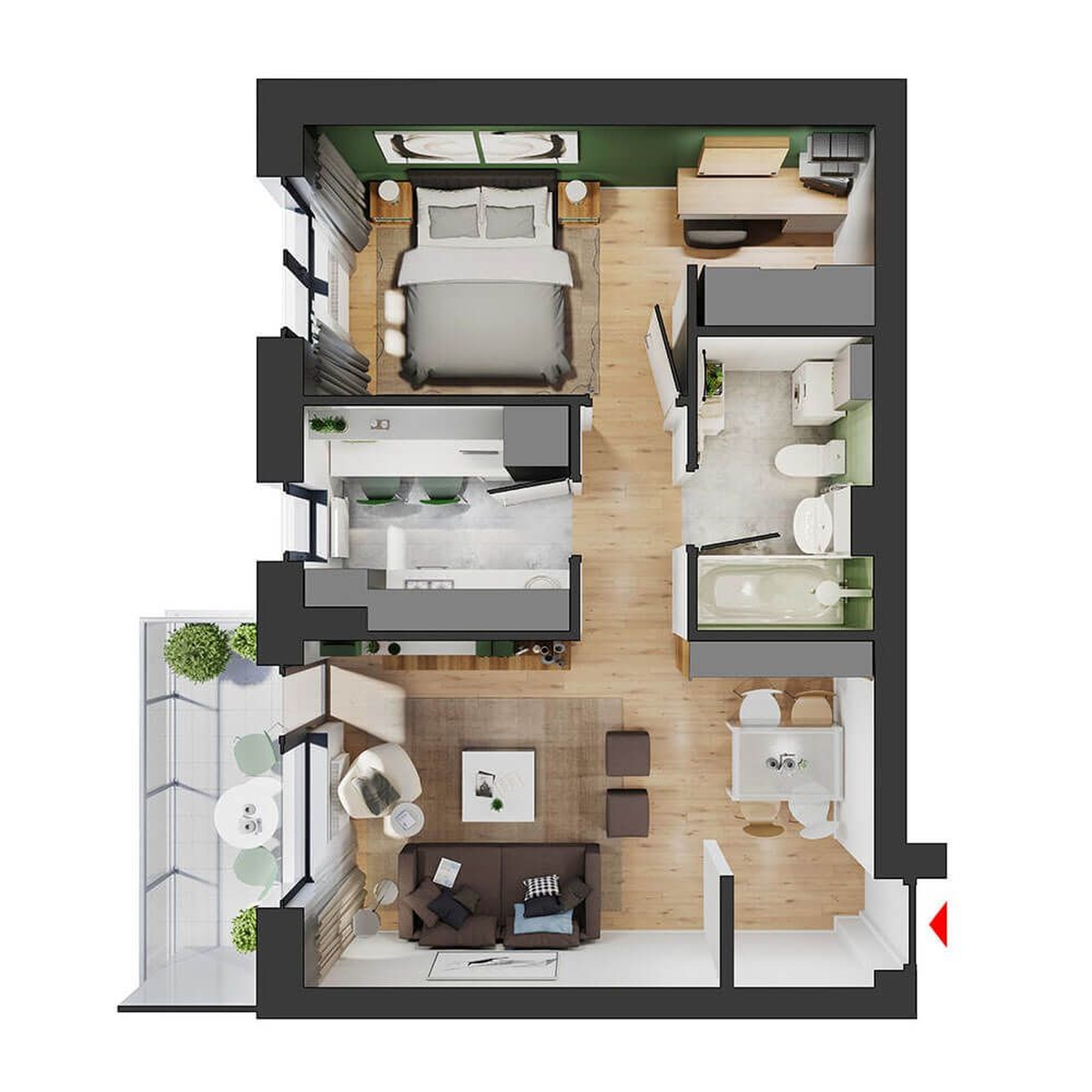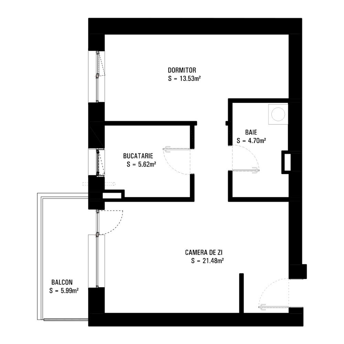 Suprafata utila este de 51,32mp, format din living, dormitor, baie, bucatarie inchisa si balcon.