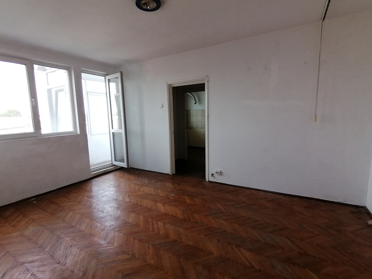 apartament de 2 camere situat la et. 5 in bloc reabilitat. Vedere catre zona de case, ferit de zgomot. Bucataria inchisa, balcon inchis, dispune de 2 debarale, parchet lemn masiv. Necesita renovare