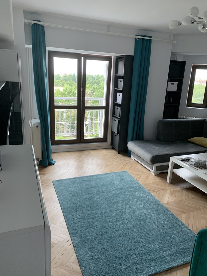 Vedere panoramica, directa si neobturata catre Palatul Parlamentului si catre parcul Izvor. Acest lucru si faptul ca fiecare camera are un balcon francez (si baia un geam mare) fac ca apartamentul sa fie si foarte luminos.