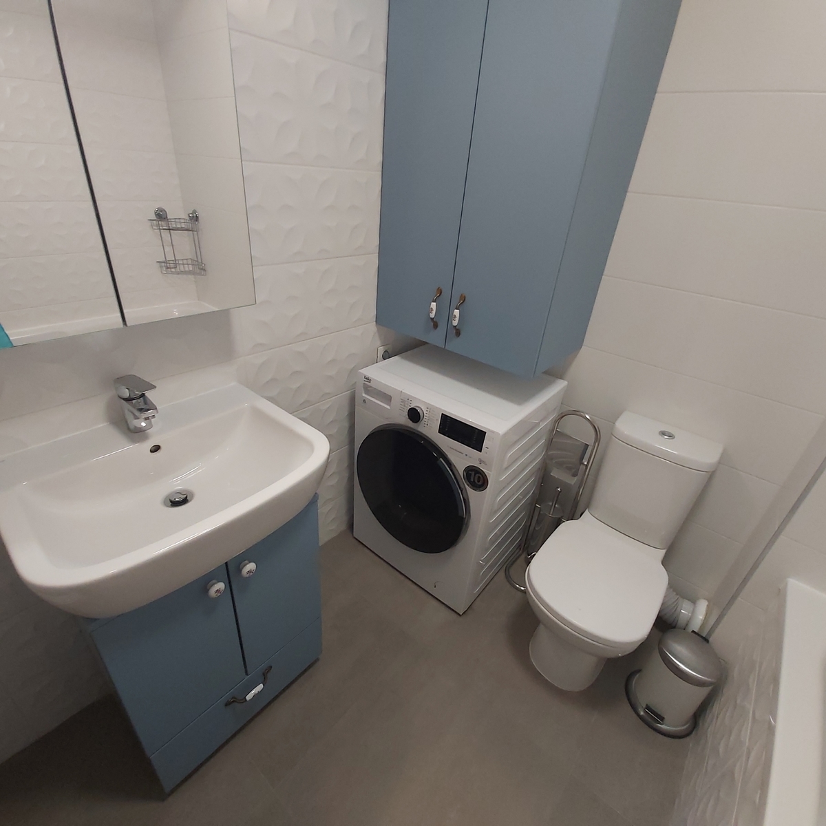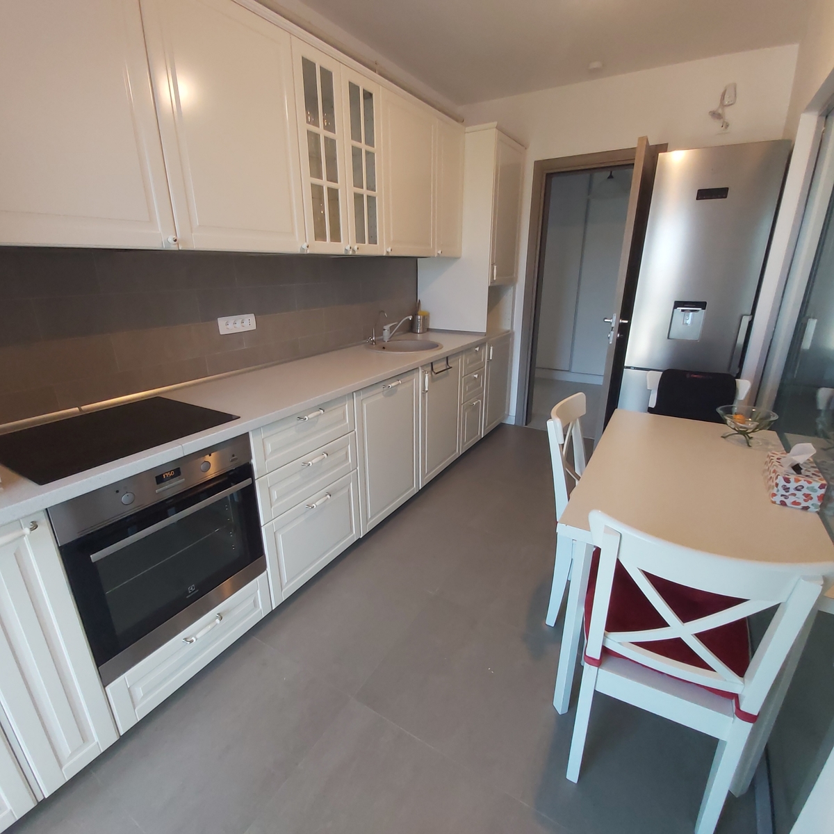 Deasemnea, in proximitatea cladirii este un teren de baschet, tenis de masa si un loc de joaca pentru copii. Apartamentul este decomandat, modelul cel mai mare cu spatiu de dressing in hol, etajul 6 din 11, suprafata utila 57 mp + 4 mp terasa, se vinde mobilat si utilat. Bucataria este utilata cu frigider Beko, cuptor si plita + hota Electrolux, centrala termica Viessmann, filtru apa incorporat in chiuveta. Intre bucatarie si living este un perete din sticla securizata care creeaza un spatiu vitrat generos si permite in acelasi timp gatitul fara grija mirosului din living. Accesul pe terasa se face atat din bucatarie cat si din living, unde este unitatea de aer conditionat Gree. In hol este incorporat un dressing voluminos, facut pe comanda si pantofarul. Baia este utilata cu obiecte sanitare Ideal Standard, masina de spalat Beko si spatii de depozitare. Dormitor cu spatii vitrate generoase, dressing, noptiere si patul cu saltea Wellpur de la Jysk. Vederea din apartament este libera, fara posibilitatea de a fi obturata in viitor. Optional se poate vinde si locul de parcare suprateran si boxa de la subsol de 4 mp. Apartamentul este ideal pentru investie si se poate achizitiona inclusiv prin credit ipotecar. Acces transport in comun: metrou Lujerului, linia tramvai 41 si numeroase alte rute de autobuze si troleibuz.