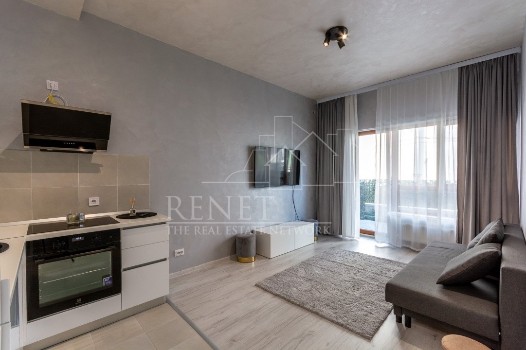Avem un apartament mic, cochet, elegant, cu o superba terasa de 13 mp, mobilat si utilat complet. Sa-ti vina "bobocul" doar cu valiza. Si sa te scape pe tine de stresul de a renova, amenaja, mobila, utila. Aici mâine, esti acasa!